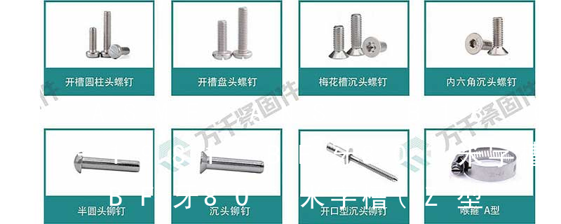 1.機(jī)螺釘 2.自攻螺釘 3.鉆尾螺釘 4.墻板釘 5.纖維板釘 6.木螺釘7.六角木螺釘 8.不脫出螺釘 9.組合螺釘 10.微型螺釘 11.家具螺釘 12.電子螺釘頭型:1.六角頭(hexagon head) 2.六角頭法蘭面(hexagon head with flange) 3. (鐵板牙自攻螺絲) B-2: Plastic Tapping Screw. (塑膠用,自攻螺絲) C: Wooden Screw : 木工螺絲 D: Drywall Screw :水泥墻螺絲 E: Self Drilling Screws鉆尾螺絲(不銹鋼鉆尾螺絲,復(fù)合材料鉆尾螺絲) F:膨脹螺絲,四片膨脹螺絲又